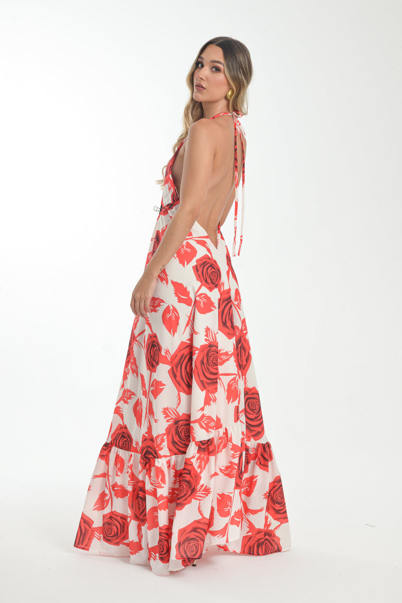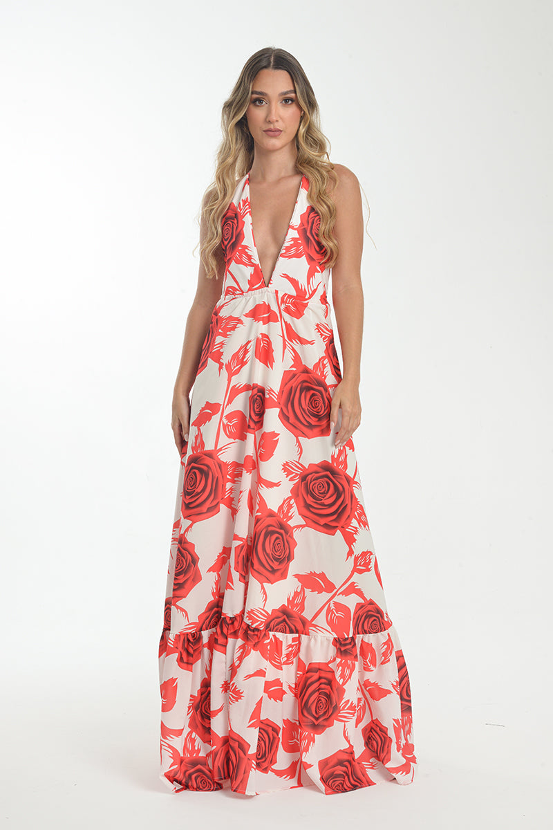Channel your inner romantic with this striking red and white rose print dress. The deep V-neckline adds a touch of allure, while the tiered skirt gives it a whimsical feel. This dress is perfect for a date night or any event where you want to feel like a queen.